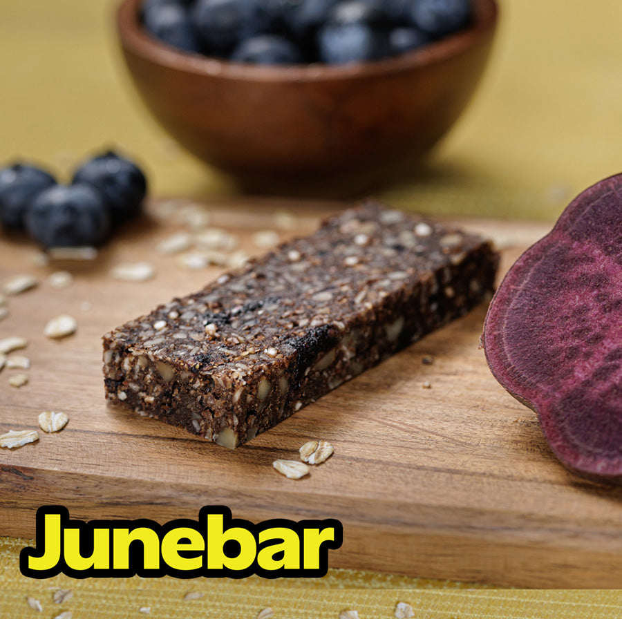 Junebars are made with 100% whole food. Our foundational ingredients are sweet potatoes, black beans and dates.